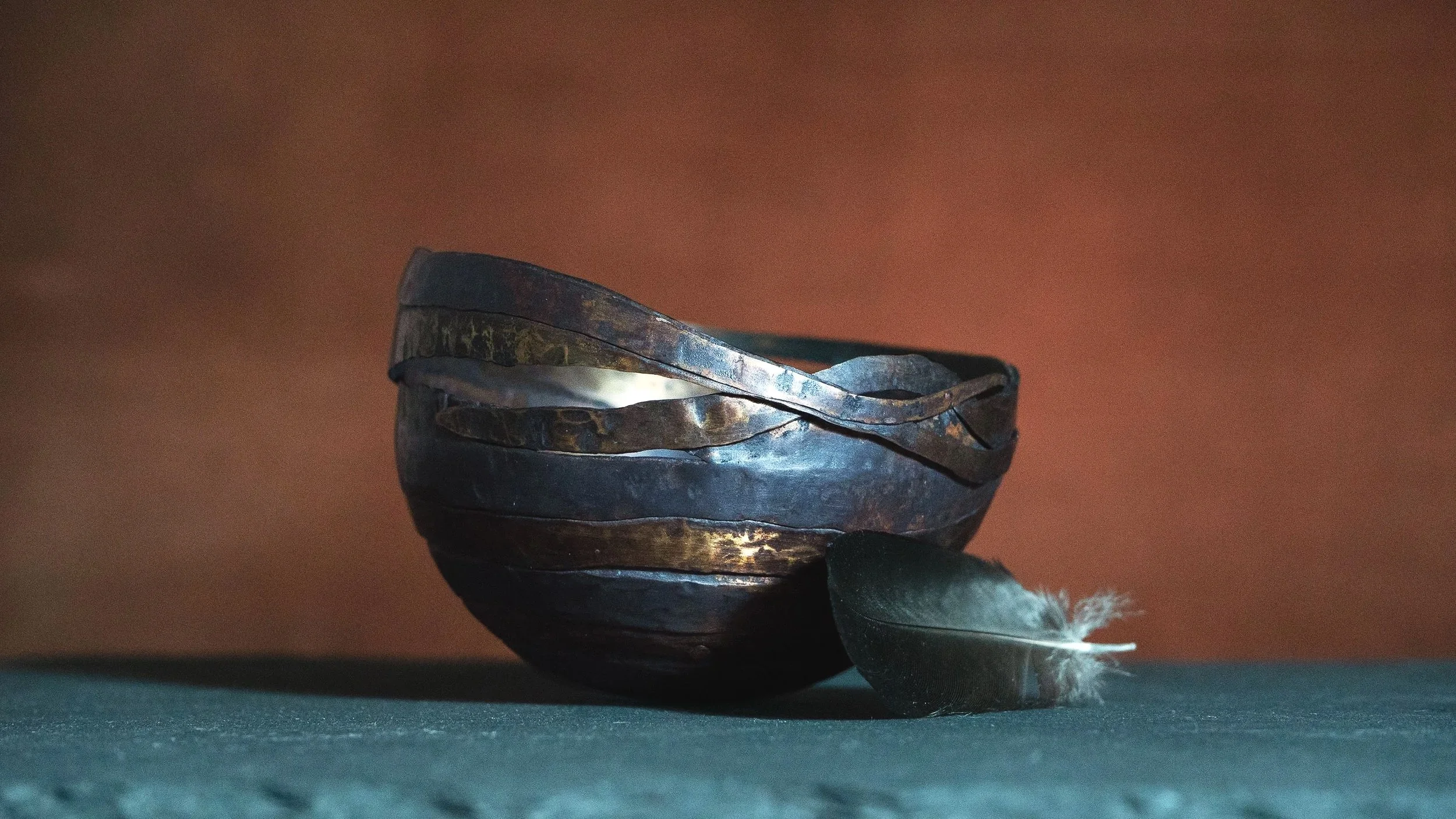 From her workshop, based in Northamptonshire, Helen designs and makes a collection of both Jewellery and larger Hollow Forms and Bowls taking inspiration from the Ancient Egyptian ritual of mummification. These bound forms of old, steeped in mystery and surrounded by the ancient beliefs of the Afterlife, continually offer a rich source of inspiration for her more recent Bound Jewellery Collection and larger pieces.